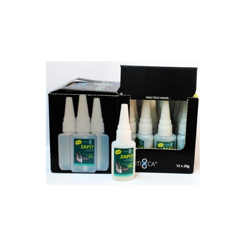 Pegamento cianoacrilato Zapit 20 gramos, pegamento instantáneo formulado especialmente para el sector zapatero y curtidos.