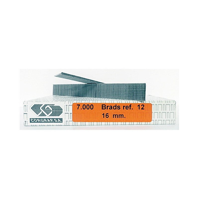 Clavo/Brads 12/16, usado para clavar tapas en tacones, para carpinteria y tapicería. 7 millares en cada caja.