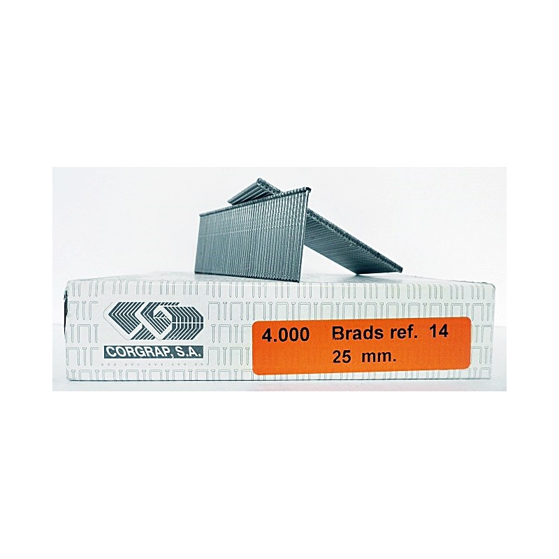 Clavo/Brads 14/25, usado para clavar tapas en tacones, para carpinteria y tapicería. 4 millares en cada caja.