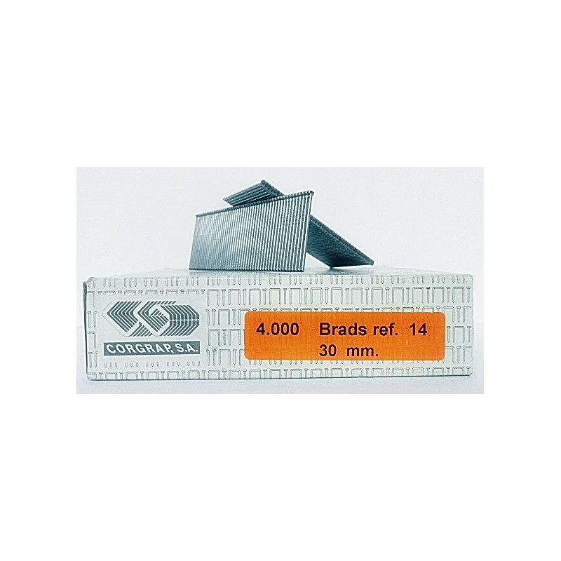 Clavo/Brads 14/30, usado para clavar tapas en tacones, para carpinteria y tapicería. 4 millares en cada caja.