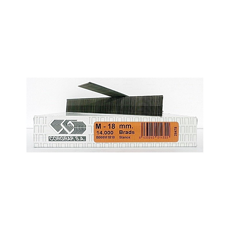 Clavo/Brads M/18, usado para clavar tapas en tacones, para carpinteria y tapicería. 14 millares en cada caja.
