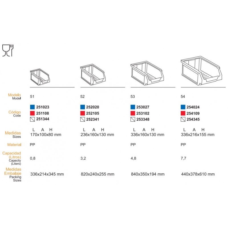 Cubeta apilable 7.7 litros de capacidad modelo 54, hechas en polipropileno y aptas para almacenaje de productos alimenticios. Ideal para almacenaje de piezas, herramientas, adornos y pequeñas piezas, marca Tayg.