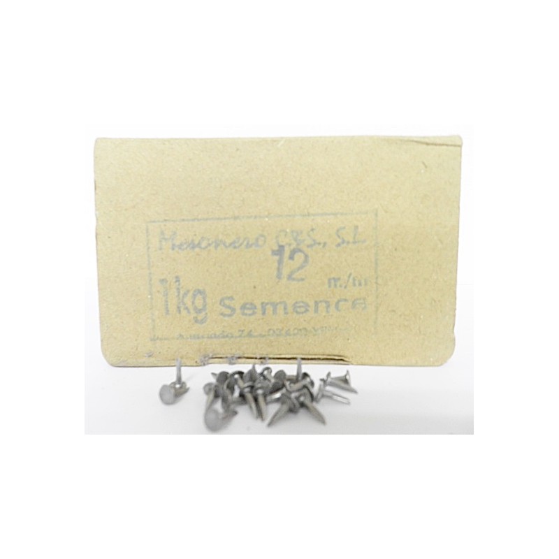 Clavo manual tipo semence 12mm largo, 1 kg por caja. Para montaje del zapato en la horma, marca Caturla y Robledo, fabricado en España.