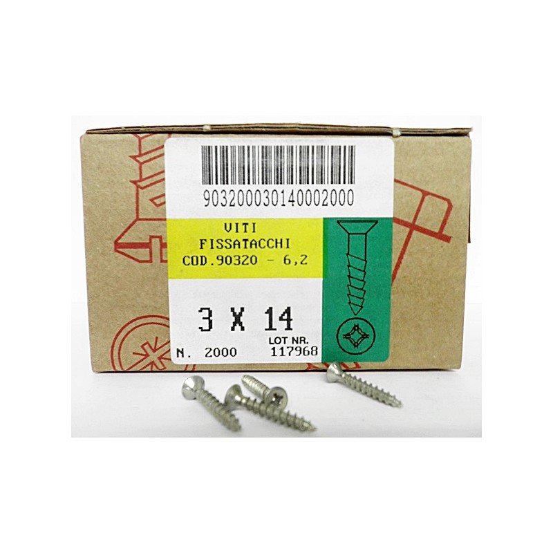 Tornillo para prefijar tacones a maquina, también es un tornillo muy utilizado para la industria de la carpintería, 2000 unidades por caja 14 mm largo.