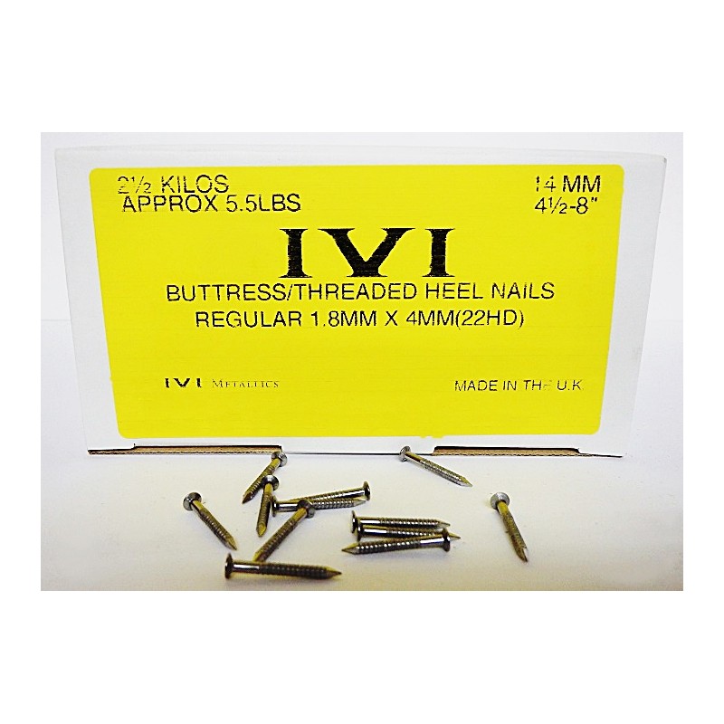 Clavos para fijar tacones 12/14 IVI, 2.5kg por caja 14 mm largo. Clavo de aplicación con clavadora neumática.