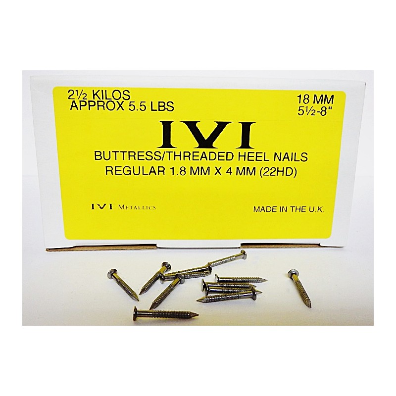 Clavos para fijar tacones 12/18 IVI, 2.5kg por caja 18 mm largo. Clavo de aplicación con clavadora neumática.