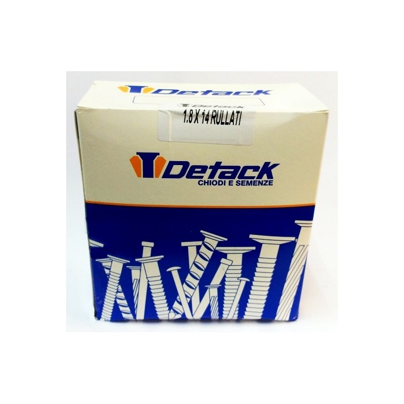 Caja de clavos para reclavar tacones 12/14, 2.5kg por caja 14 mm largo. Clavo de tipo rullati para maquinaria de clavos. El grosor de la cabeza es 1.8mm, y el ancho 1.2mm.