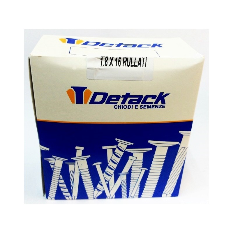 Caja de clavos para reclavar tacones 12/16, 2.5kg por caja 16 mm largo. Clavo para maquina de reclavar tipo rulado. El grosor de la cabeza es 1.8mm, y el ancho 1.2mm.
