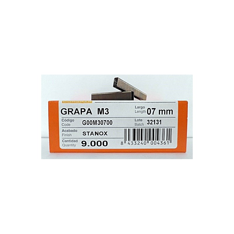 Caja grapas M/3 lazos de 7 mm, grapa exclusiva para lazos y adornos. Cada caja contiene 10 millares.