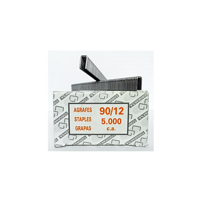 Grapas 90/12 Corgrap, Grapas para tacones y cuñas calzado. Aplicación también en industria maderera para carpintería y marquetería. 5 millares por caja.