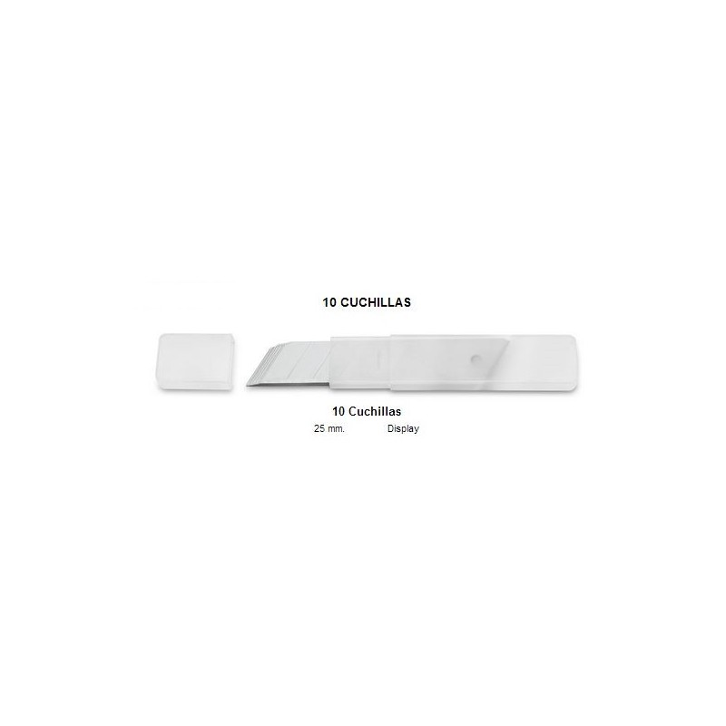 Caja 10 unidades de cuchillas de recambio para cutter de 25mm, marca 3 claveles. Cuchillas de 25mm compatibles con cutter anchos que admitan cuchillas de 25mm.