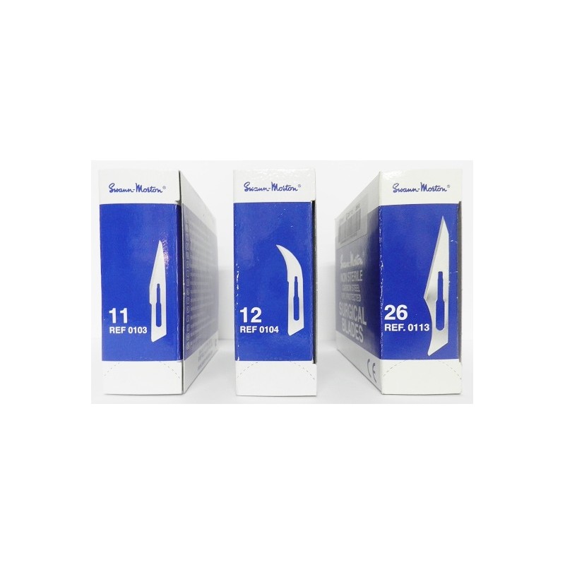 Recambio cuchilla para bisturí nº12, usada en el calzado para sacar calados. Caja de 100 uniades.