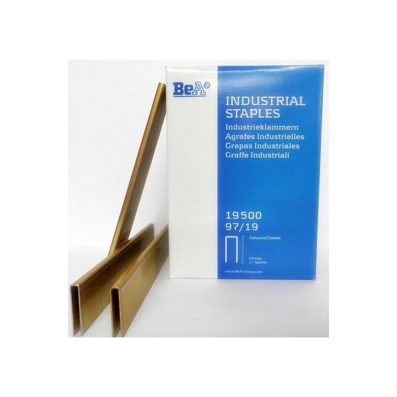 Caja de Grapas 97/19 Bea 19500 grapas por caja, este tipo de grapa de alambre fino se utiliza para fijar plantas a la horma y tacones en los zapatos, también es de uso común en trabajos de tapicería y para fijación en trabajos de carpintería.