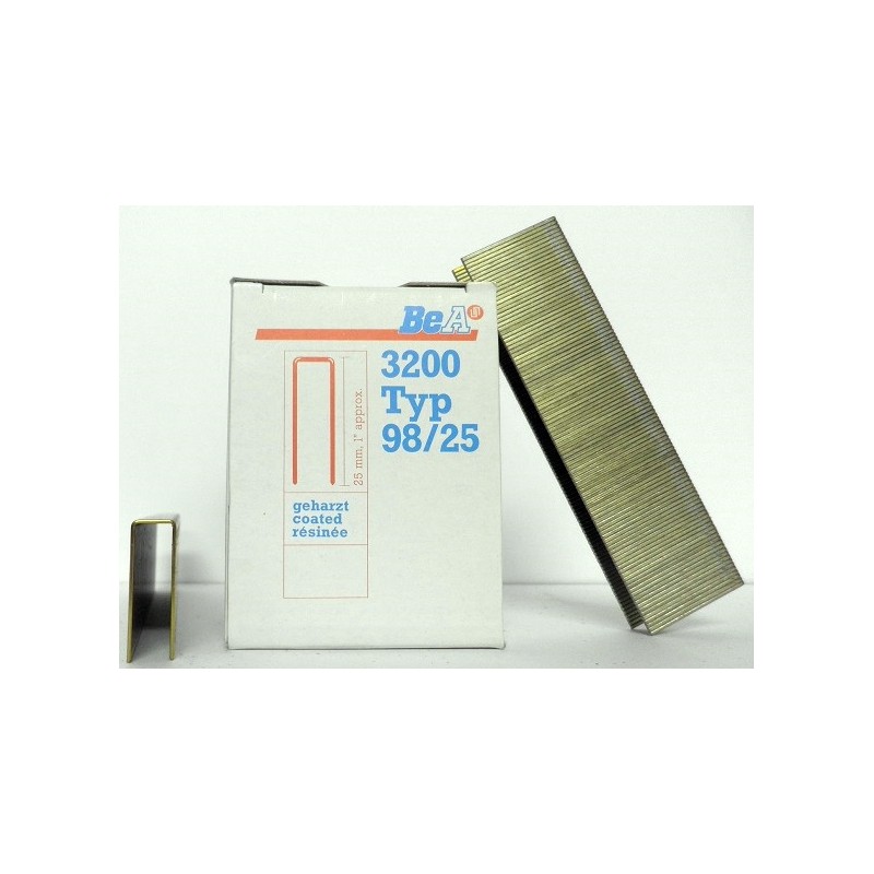 Caja de Grapas 98/25 Bea, grapa para cuñas y enfranques del calzado, también se usa en tapicería y marquetería. 3.2 millares por caja.