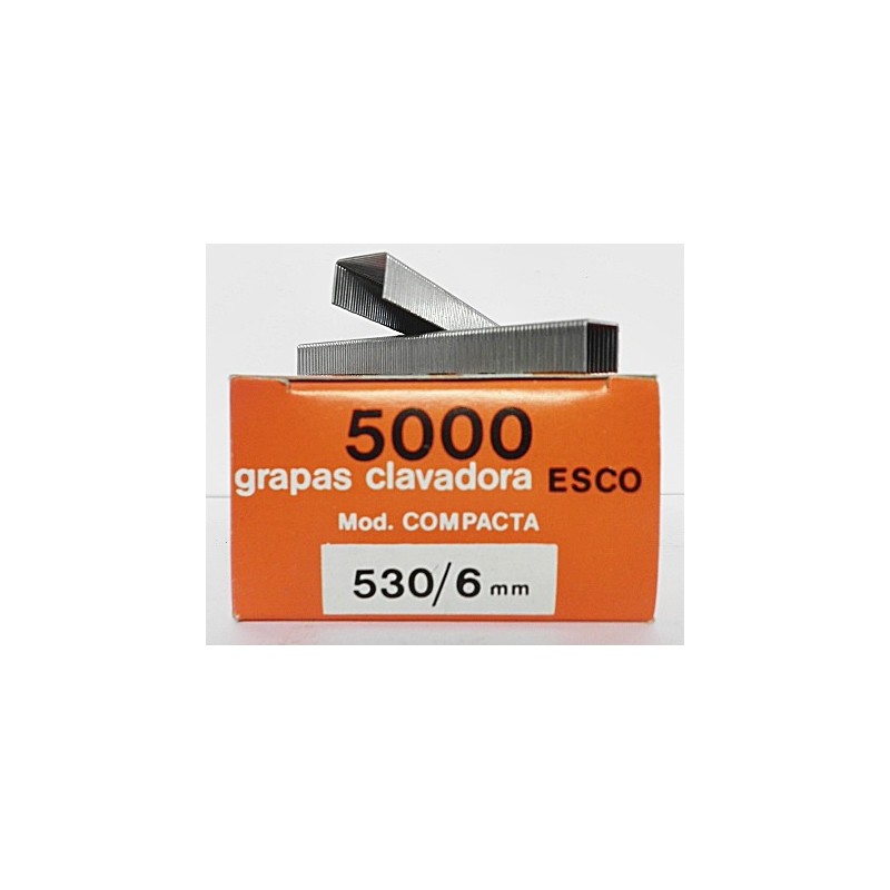 Caja grapas gama 530 largo 6 milímetros, para trabajos de tapicería y colocación de costados en el calzado. Cada caja contiene 5000 unidades.
