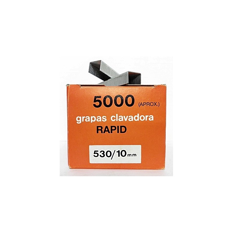 Caja grapas gama 530 largo 10 milímetros, para trabajos de tapicería y colocación de costados en el calzado. Cada caja contiene 5000 unidades.