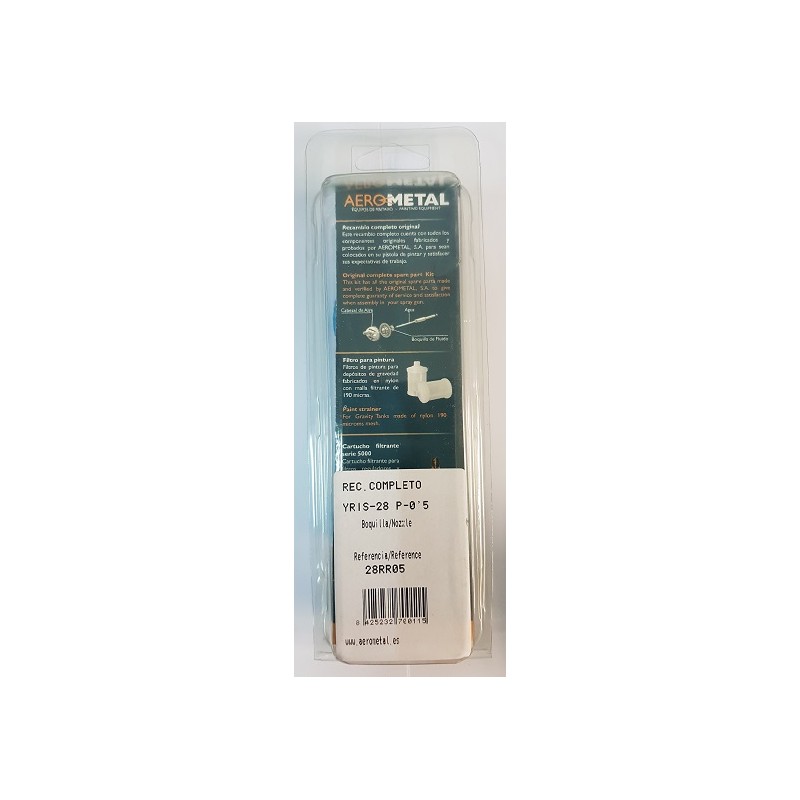 Recambio completo para pistola aerográfica Yris 28 paso 0.5mm, usada para difuminar y dar retoques al calzado. Marca Aerometal.