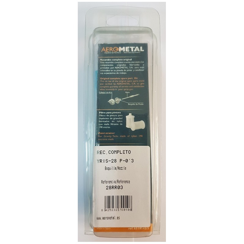 Recambio completo para pistola aerográfica Yris 28 paso 0.3mm, usada para difuminar y dar retoques al calzado. Marca Aerometal.