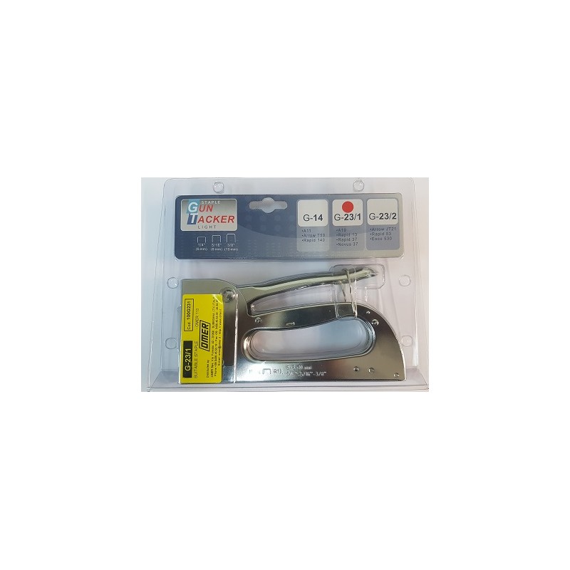 Grapadora metálica manual G23 1 , grapadora multiples usos en la industria y para trabajos de bricolaje y tapicería. Utiliza grapas 131, también llamadas de la serie 13 o 113 en función de la marca que las comercializa.