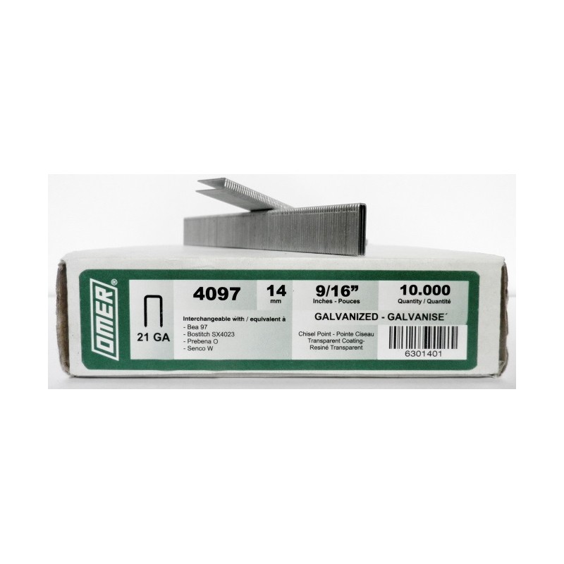 Caja de Grapas 97/14 Omer, grapa para plantas y cuñas de los zapatos. Grapa muy utilizada para carpintería, tapicería y marquetería. 10 millares por caja.