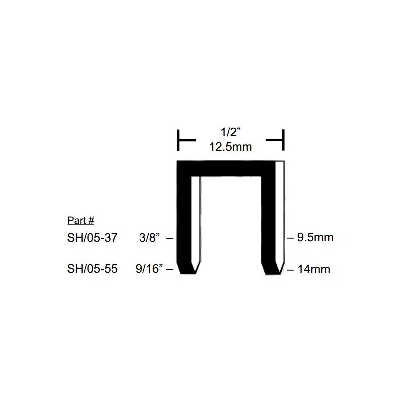 Caja grapas Raptor 82p serie SH05, 10 milímetros de largo, grapas de plástico de material polímero no metálicas aptas para infusión, usadas en industria naval, aeronáutica y eólica. 5040 grapas por caja.