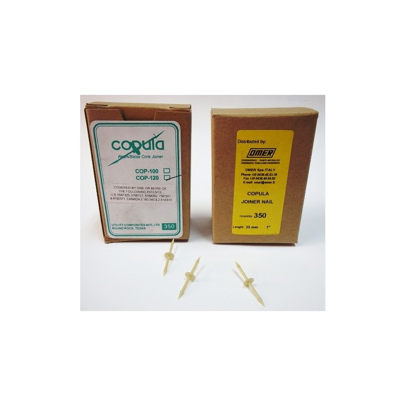 Caja uniones Raptor para nucleos de PVC, balsa, foam, 25 milímetros de largo de plástico material polímero no metálicas aptas para infusión. Las uniones copula se utilizan para trabajos en la industria naval, aeronáutica y eólica. 350 uniones por caja.