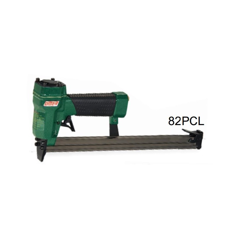 Grapadora neumática Omer 81P CL para usar con grapas de la series81P de la marca Raptor aptas para infusión. Para trabajar entre 4-6 atmosferas, carro largo con capacidad para 175 grapas para grandes cantidades de producción y mayor eficacia.