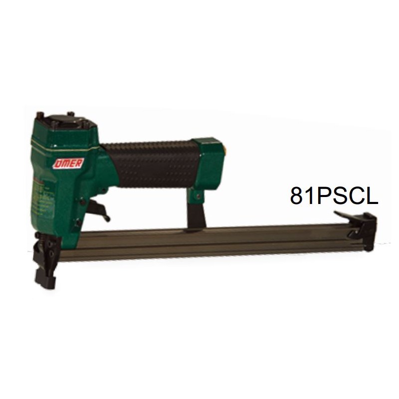 Grapadora neumática Omer 81P SCL para usar con grapas de las series 81P de la marca Raptor aptas para infusión. Para trabajar entre 4-6 atmosferas, morro y carro largo con capacidad para 175 grapas para grandes cantidades de producción en zonas que requieran gran precisión.